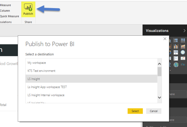 Now open either of the LS Insight template files. You need to repeat the following steps for each report template you want to publish to the Power BI cloud service.