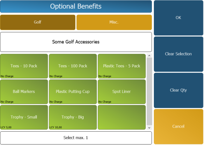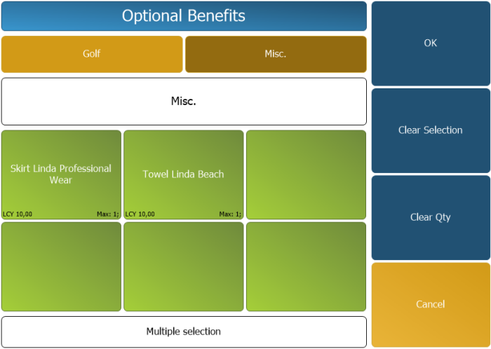 When you press the Total button on the POS, a pop-up window appears and the offer is triggered with selections. An example of Optional Benefits: