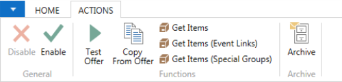 The status of an offer is either Disabled or Enabled. The status can be changed in all lists and card pages. Offer information and settings can only be changed when it has the status Disabled. Only Enabled offers are triggered on POS.