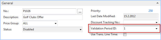 Starting and ending dates are displayed in the Validation Period FactBox: