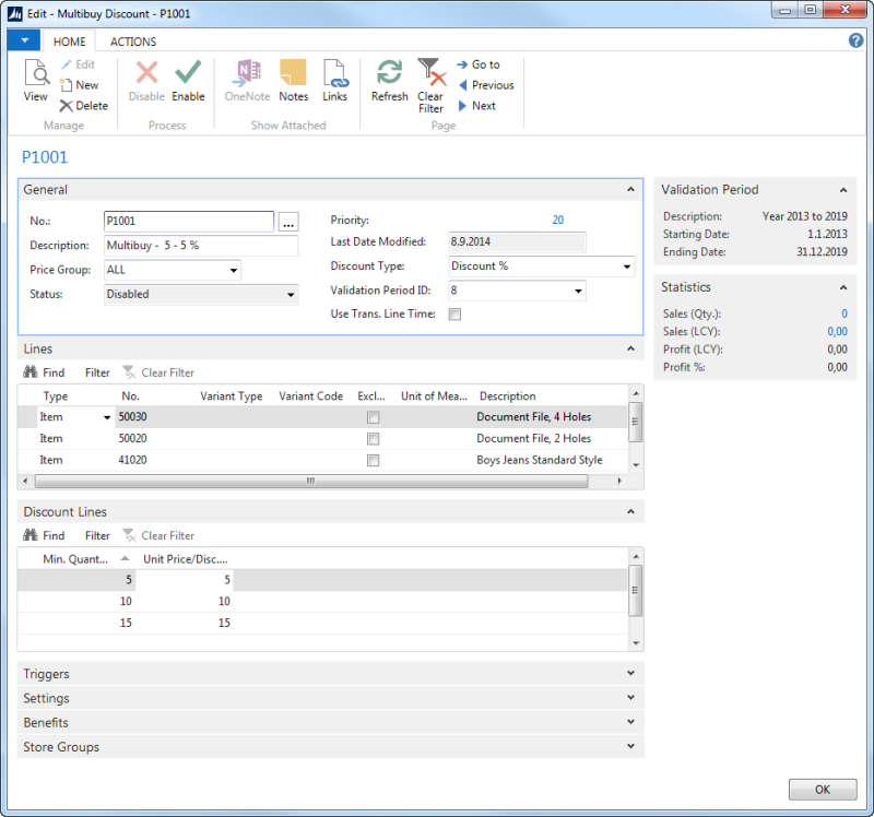 - Open the Multibuy Discounts page, select a line and click Edit.