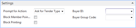 Selecting the drop down list in the Prompt for Action field gives the following options: None or Ask for Tender Type. If you select None, the offer is triggered and applied automatically. If you select the Ask for Tender Type option, a pop-up window will appear on the POS when you press Total and you must select and confirm the Tender Type Offer.