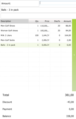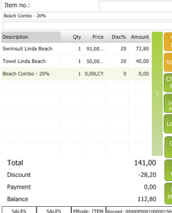 If you press OK, the items are added to the POS Transaction and the 20% discount defined in the Benefits FastTab has been applied: